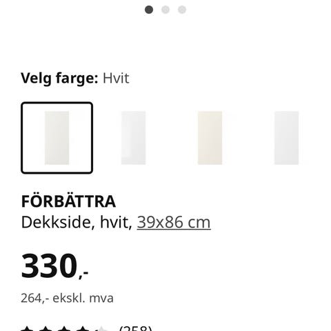 Dekkside til høyskap fra IKEA, 62 x 220 hvit, ubrukt, selges til under 1/2 pris.