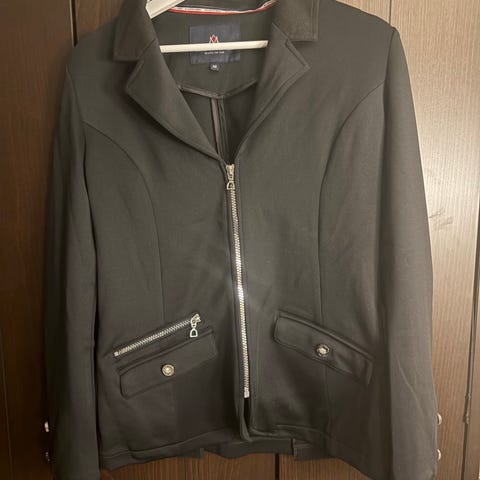 Pent brukt Mountain Horse, stevne jakke. Marineblå, med hvite striper og splitt bak. Størrelse L. Ca brukt 3 ganger.