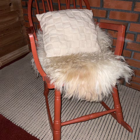 Stolen er ubehandlet og treverket har fin patina. Men man kan selvfølgelig male den om man synes det er penere.