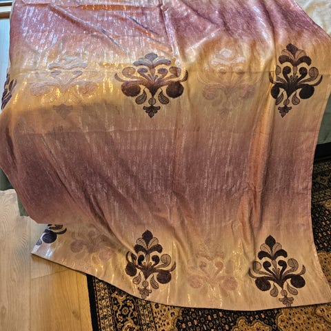 1 fag høyde 2,10 + 8 cm opplegg, bredde 143 + 8 cm opplegg Kjøpt hos Tanum tekstil, Oslo