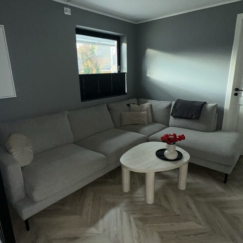 Selger en hjørnesofa fra Bohus. Kjøpt ny aug 2024 for 21 000. Fargen er beige/hvit. Noen flekker som sikkert går bort med en rens og noen små kloremerker fra katt. Selges pga arvet en sofa som var bitte litt lenger til vårt bruk Står nå demontert.