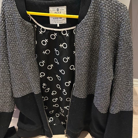 Jakken har ikke en størrelse, men passer alt fra M-XL.