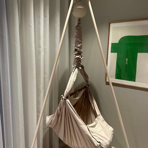Tvilling moonboon selges da tvillingene har blitt for store. Denne var virkelig en nødvendighet hos oss da det var mye uro i starten, hvis du legger 1-2 brusflasker med vann i ene delen kan moonboon brukes av 1 barn :)