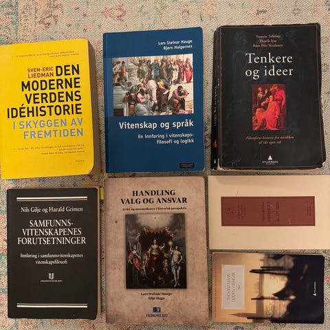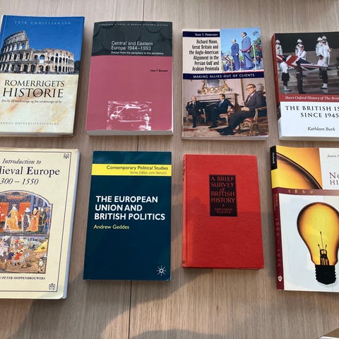 Selger bøker fra historiefag. Noen bøker har litt markeringer.