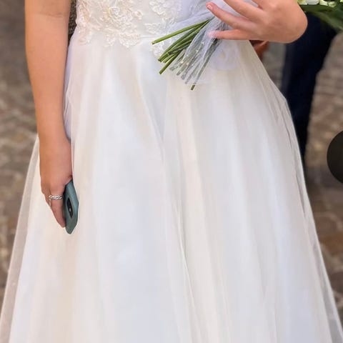 Fin, hvit brudepikekjole, brukt 2 ganger av to mine døtre