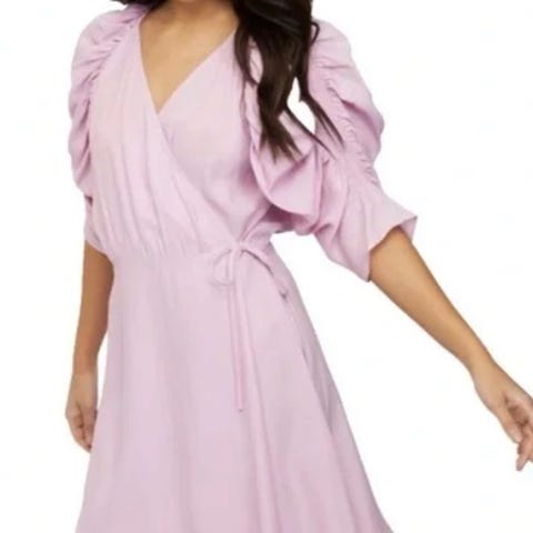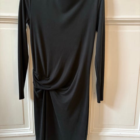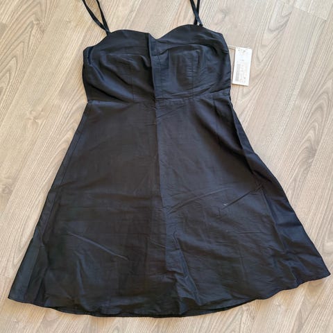 Følger med silkebånd i samme stoff som kjolen slik at den kan knyttes i livet.