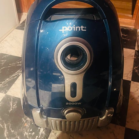 Energy+ Cyclone Power Hard støvsuger med beholder for oppsamling av støv. Produktet er utstyrt med syklonteknologi for effektiv støvsuging. Det har en svart og grå farge. Lukken på beholder er knust men den fortsatt kan brukes og funker som den skal.