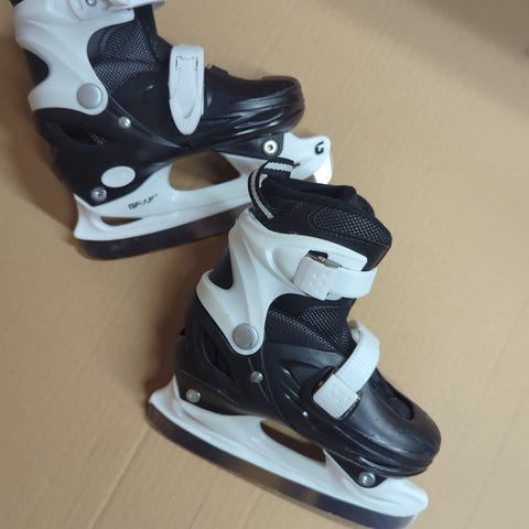 Ishockey Skøyter til barn i justerbar størrelse 30-33. Skøytene har justerbar lukking med spenne og borrelås.