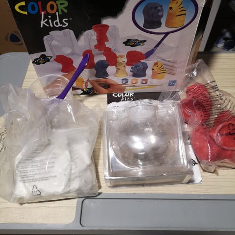 Djego-sett med 3 puslespill á 6 brikker. Settet ligger i tilhørende eske.