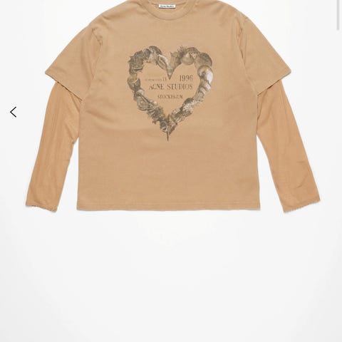 Acne Studios T-skjorte i størrelse XS for kvinner. Laget av bomull er hvit med svart skrift. T-skjorten har et unikt grafisk design. Ny pris 3500.- stor modell