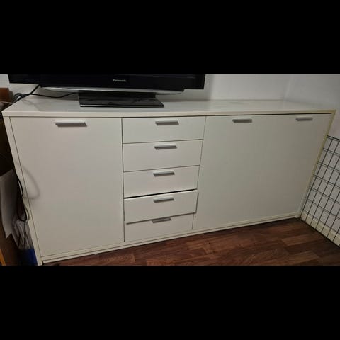 Pent brukt off hvite sjenk med 2 skap. God kvalitet