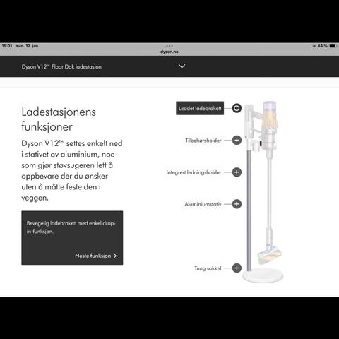 Selger helt nytt ladestativ - Floor Dok Multi, passer alle typer Dyson. Frittstående grab-and-go-ladestasjon. Ryddig oppbevaring til støvsuger og verktøy fra Dyson. Helt uten boring i vegg.