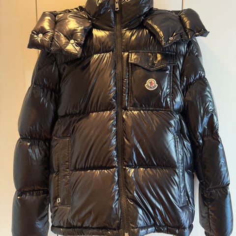 Moncler jakke i størrelse 3 selges billig. Jakken er i flannell grå, uten logo på armen som gjør jakken mindre flashy og mer stilren enn andre Moncler modeller.