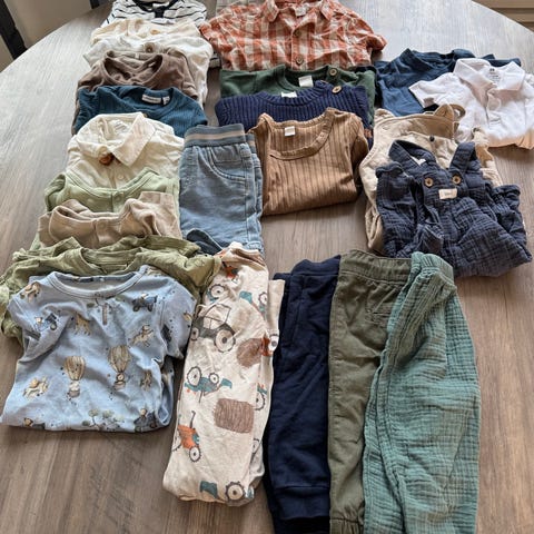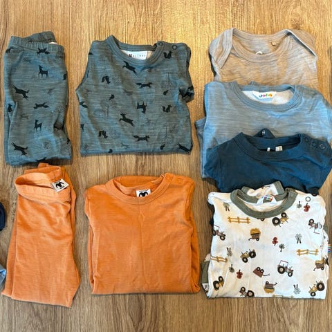 Klespakke som passer til str 62-68. Inneholder bla 2 ullsett og en ullpysj. Se bilder for mer info. Kan dele opp i to størrelses-pakker eventuelt. Noe er knapt brukt.