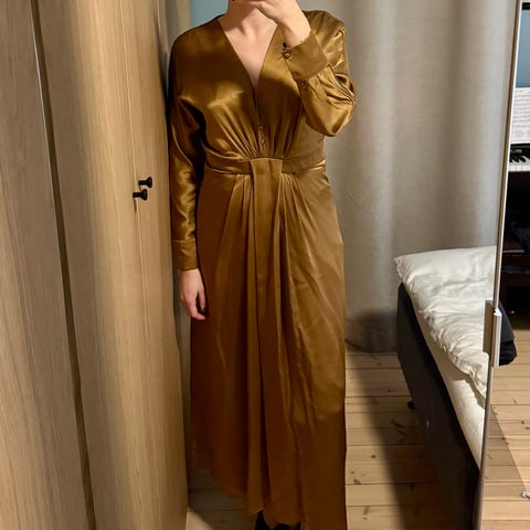 Klassisk og elegant kjole i gull eller en brun shiny farge.