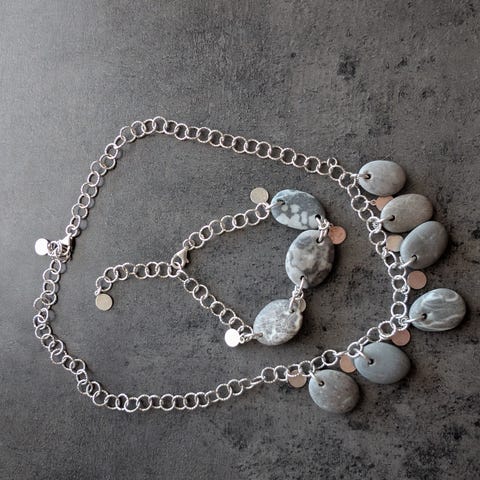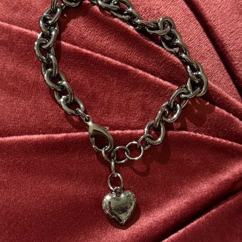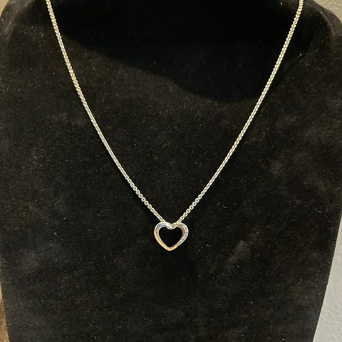 Flott kjede i sølv med hjerter.