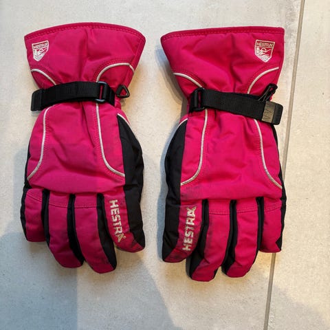 Hestra løpe/ski hansker. Et par bruksmerker (se bilder). Ingen hull, kun noen flekker/avfarging. Kjempe fine hansker som funker fortsatt fint og har mye bruk igjen. Størrelse 6.