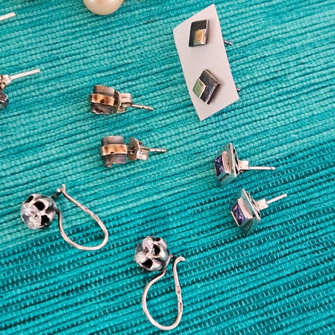 Selger ørepynt med blank sten.