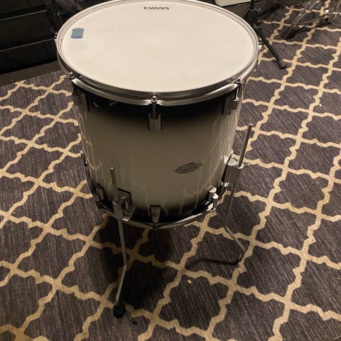 Trommen har kalve skinn på og medfølger en ny Remo Ambassador med.