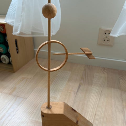 Sylinderformet med dekorative ringer og et buet håndtak, som ligner en miniatyrbrønn eller bøtte