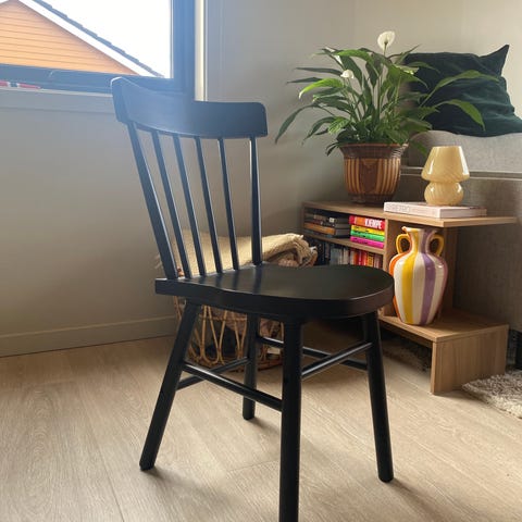 2 stk stoler i heltre, brukt til spisestue og som ekstra stoler ved sofaen.