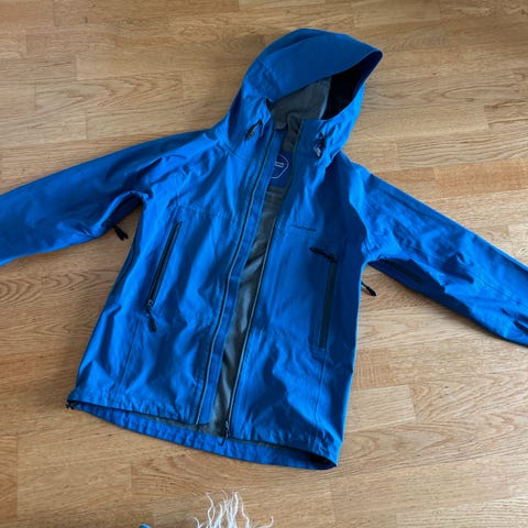 To ørsmå hull nederst på ene ermet, kan lett fikses ved å lime på vanntett liten lapp. (se bilde). Eller kan fint brukes «as is» ☺️
