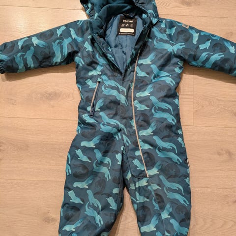Vinterdress meget pent brukt i en vintersesong av et barn. Hadde to vinterdresser, så denne er meget pent brukt. Ingen synlig slitasje. Bånd til bena inntakt. Fremstår som ny.