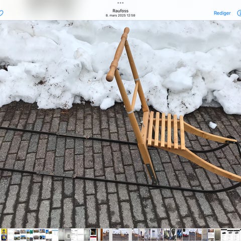 Sparkstøtting i heltre med gode jernmeier selges.Total lengde 200 cm.Høyde til håndtak 80 cm.Må hentes hos selger på Lillehammer