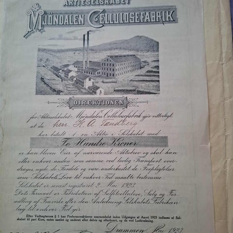 Nr 1 har 50 aksjer a 100 kr. utstedt i mars 1984.