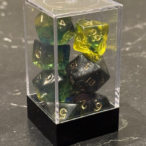 Praktisk terningholder for D&D og rollespill, perfekt for å samle og oppbevare terningene under spilling. Holder bordet ryddig og terningene lett tilgjengelige.