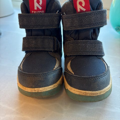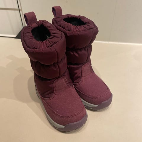 Skoene tåler godt gradestokken ned til minus 10, og egner seg godt på barnas føtter nå i kulden! Str 22 men meget romslig, så potensielt som en viking 23. skoen er som anvist på bilde uten bruksmerker/ skader. Vanntett og godt vedlikeholdt.
