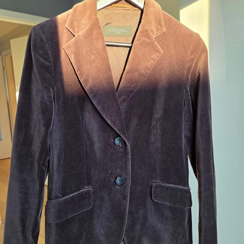 Skreddersydd svart blazer i bomull/polyester fra Weekend Max Mara. Semi-trøye med strukturerte slag, én knapp foran og fôr.