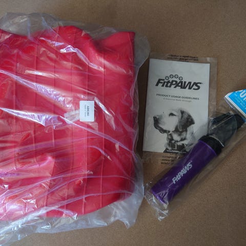 Pent og lite brukt blå Fitpaws Donut med stabiliserende ring (grå) selges samlet.