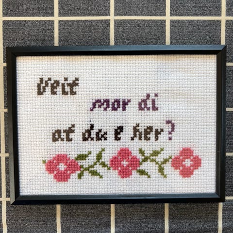 Geriljabroderi- Å ha meg som eks er vel gave nok tenker jeg. Selges for 230 kr.