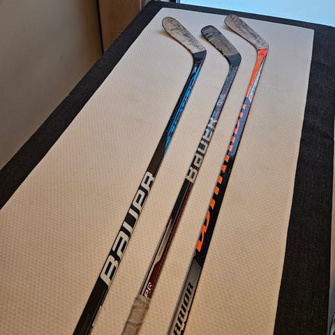 To ishockeystaver fra merkene CCM og Vaughn. Begge er designet for ishockeybruk, med materialer og konstruksjon tilpasset sporten.