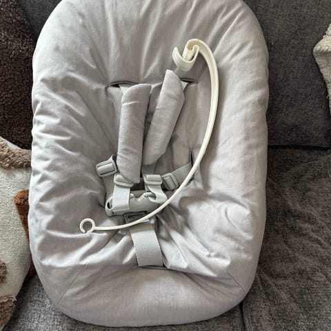 Stokke new born set og sikkerhetssele. Designet for barn med fokus på komfort og sikkerhet. Er med to ekstra trekk som er helt rene og klare for bruk. Lekebøyle følger med