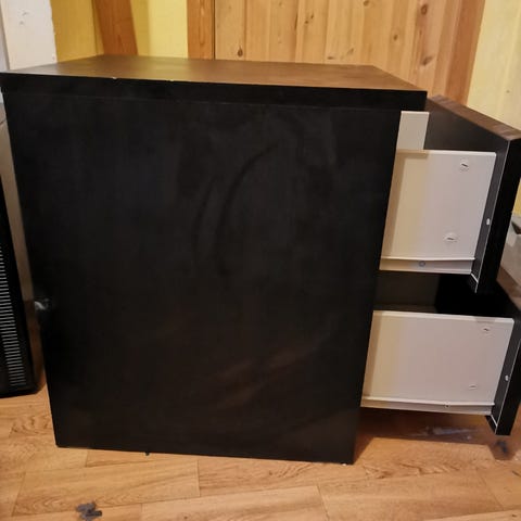 Liten skade nede til venstre på nederste skuff (se bilde).
