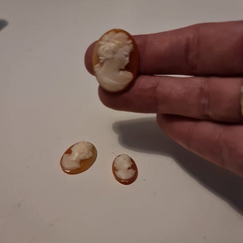 Lott med diverse smykkestener for bearbeiding. De i poser er som følger: