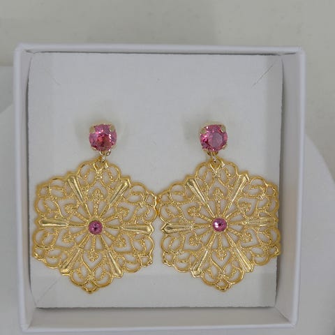 Øredobber kledd med Swarovski krystaller i en varm rosa farge. Glitrer nydelig i lyset. Høyde 3.5 cm. Håndlaget av meg til deg 🌸Nikkelfritt. Leveres i gravert smykkeeske.