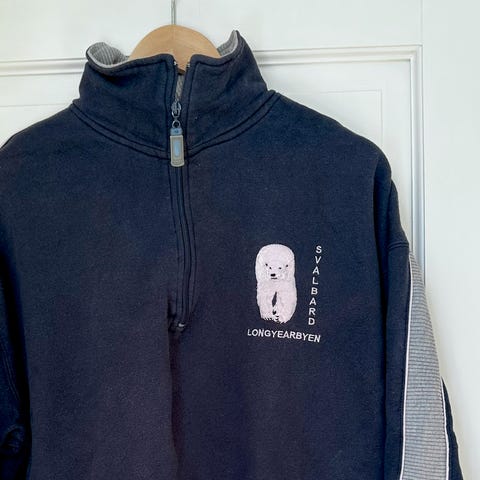 God og varm Svalbard genser. 80% ull, 15% rayon, 5% polyamid. Hel lengde 75 cm. Ermlengde 52 cm. Brystvidde 67 cm. Pent brukt. Kr 500.