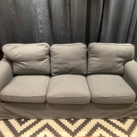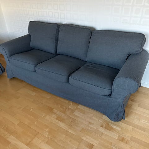 Ikea Ektorp 3-seter sofa m/sjeselong og lenestol selges samlet hbo 950,-. Vaskbart/byttbart trekk. Sjeselong kan flyttes.