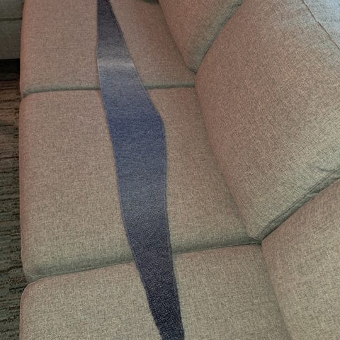 Mørke grått skjerf i Alpaca Soft garn % Alpaca og 60 % Akryl . Lengde 138 cm, 15 cm på det bredeste. 230 kr