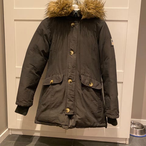 Pent brukt Svea vinterjakke. God kvalitet og få bruksmerker. Er nyvasket. Pelsen på hetten kan tas av.