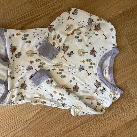 Godt brukt body fra Joha i ull/silke str 90cm(86/92). Liten rift nederst med det ene låret, men ingenting for bruken sin del, kan evt sys :)