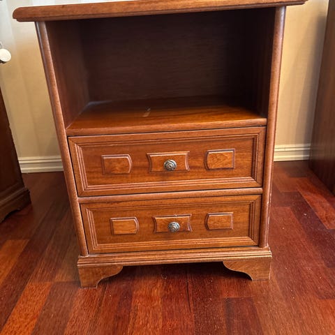 Brun tvbenk i tre til salgs