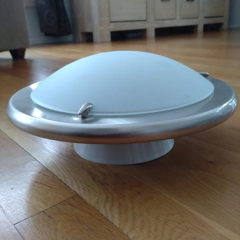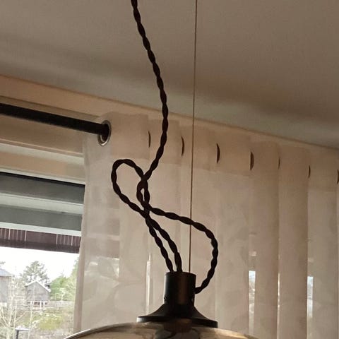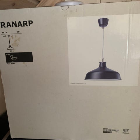 IKEA Svend Middelboe taklampe i rødt. Lampen har en dekorativ design med flere lag og former som gir et unikt lysuttrykk. Egnet for bruk i stue eller andre rom som trenger stemningsbelysning.
