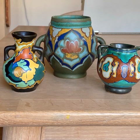 🤎 Gouda keramikk, nederlandsk keramikk, vintage vase, 40-tall, 50-tall, retro interiør, blomsterdekor, studiokeramikk, håndmalt keramikk, mid century 🤎