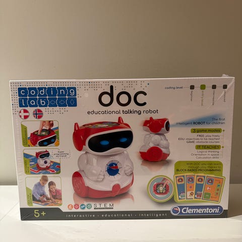 Clementoni Snakkende DOC programmerbar robot som hjelper barnet med å utvikle logiske resonnementer og problemløsningsferdigheter; - lærer bokstaver, tall, farger og navn på dyr.