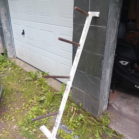 Benk med skiver og stang selges for 7000,-