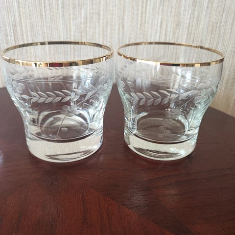8 drikkeglass med gull håndtak, gode og gamle, tåler fint oppvaskmaskin